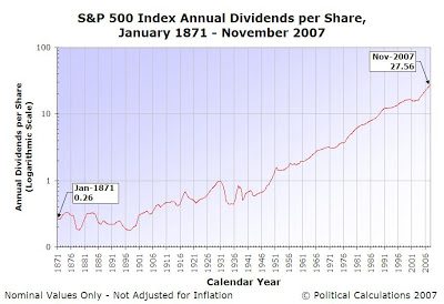 Voici un graphique des dividendes distribués sur les actions américaines depuis 1871 :