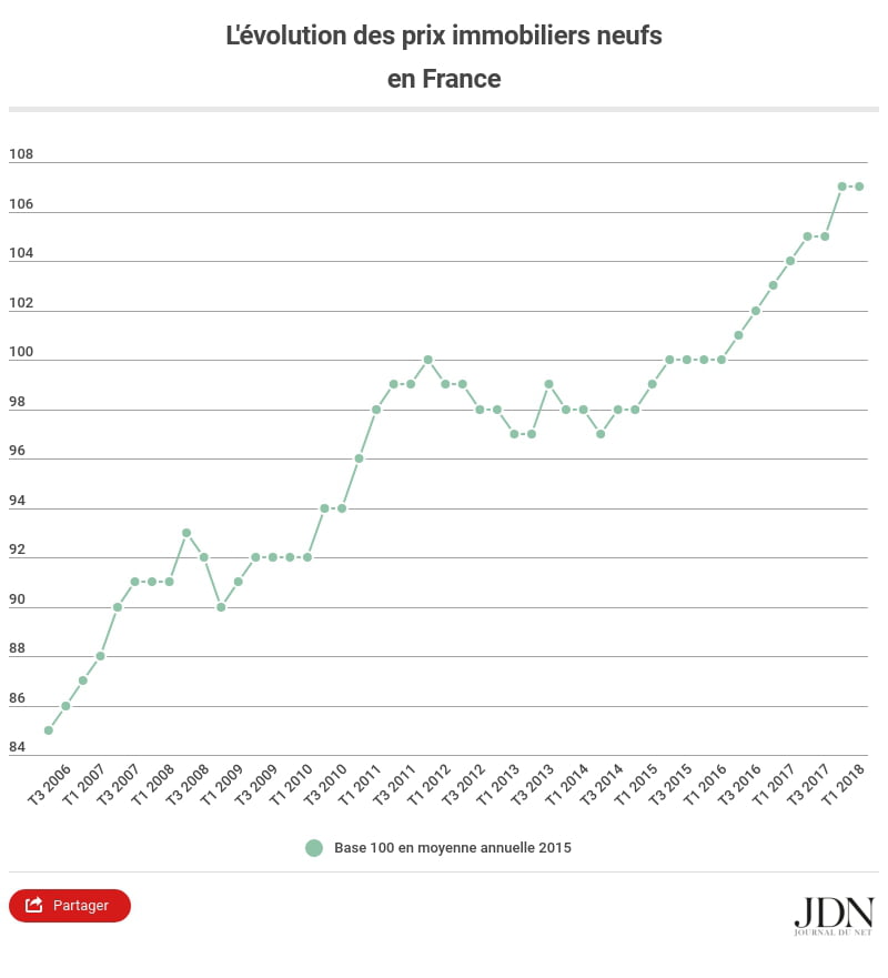 Voici maintenant la courbe d’évolution des prix de l’immobilier en France aujourd’hui :