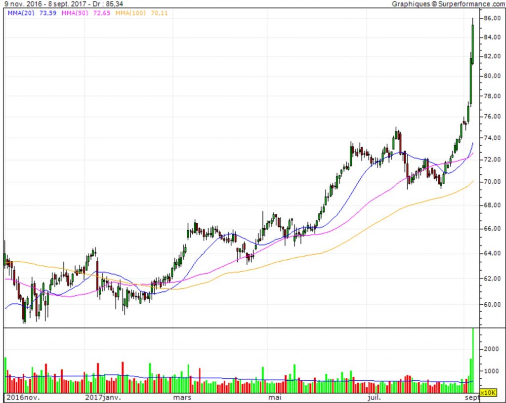 J’ai pensé qu’il serait intéressant de la présenter car c’est une action que j’ai acheté il y a tout juste quelques mois, et elle illustre bien le fait qu’en bourse il existe toujours de bonnes opportunités, même lorsque le marché est haut comme en ce moment.